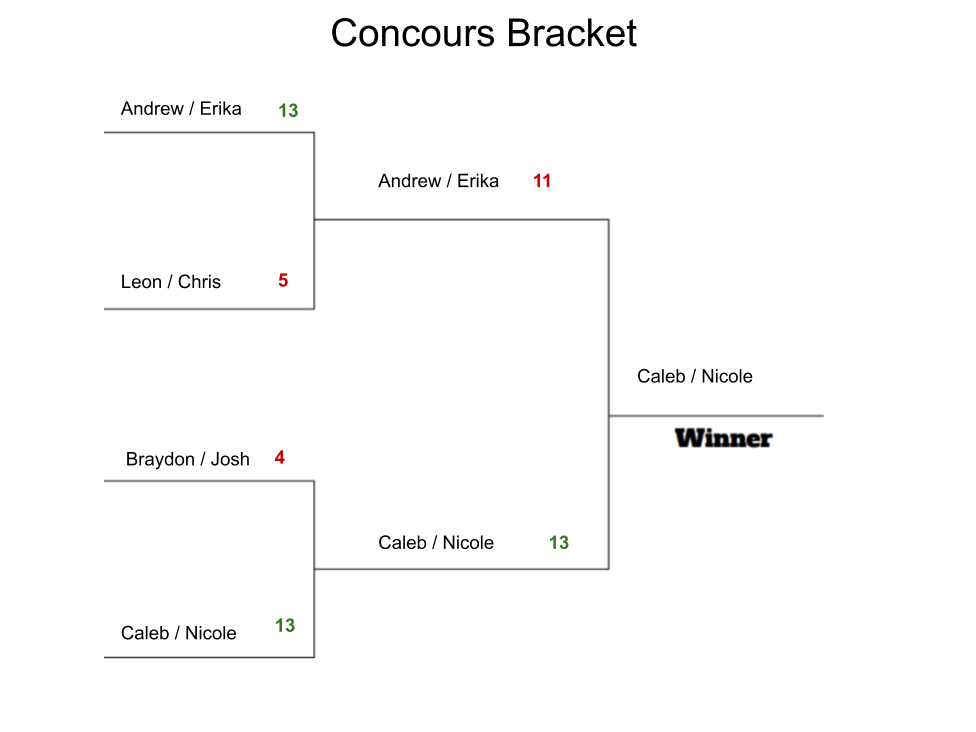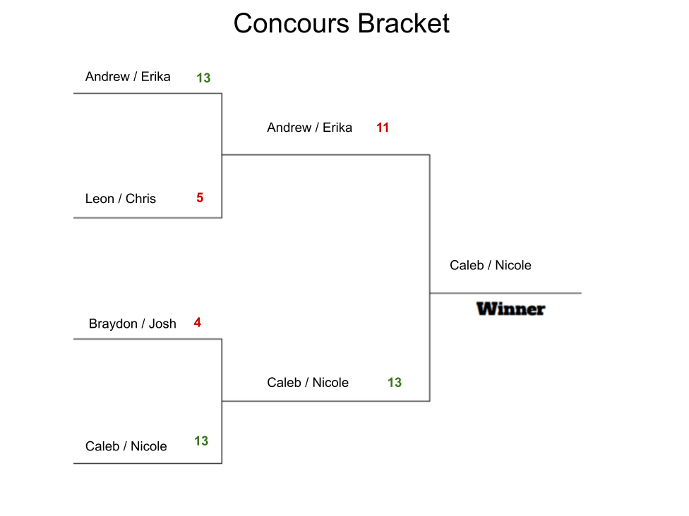 The final match was between Andrew & Erika versus Caleb & Nicole. This game was close and intense. Point for point through most of the game, it was definitely a nail-biter.