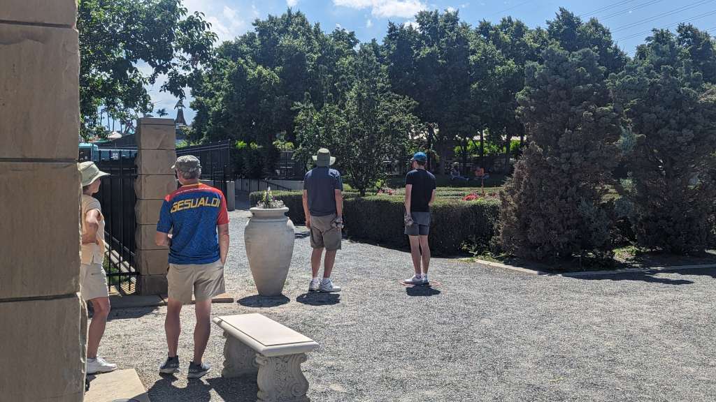Luckily, on the 25th of June, it was a bright, sunny, and breezy day that was perfect for a few rounds of Petanque. Centennial Gardens was in top shape, flowers in bloom and the courts well manicured.
